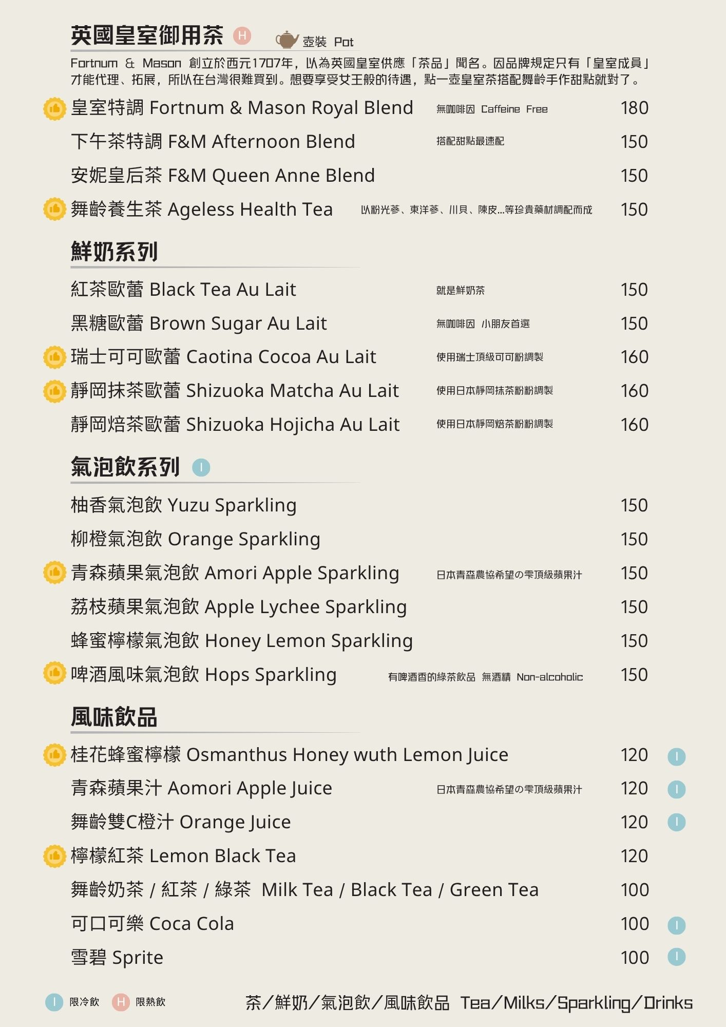 Ageless Café & Restaurant 舞齡餐廳 營業時間:每週三~週日 10:00-18:00(每週一、二固定休假)